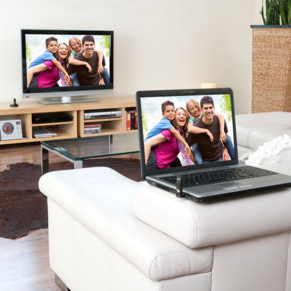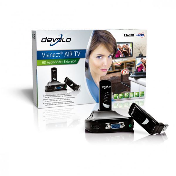 Egyszóval ezt a funkciót nem könnyű kiváltani, főleg ha a legjobb minőségre törekszünk. A Devolo Vianect AIR TV éppen azért született, hogy ezt a problémát legalább részben orvosolja, illetve megkönnyítse a mindennapi felhasználó dolgát. A kis készülék, ami egy adó és vevőberendezésből áll, minden olyan ki- és bemenettel rendelkezik, ami lehetővé teszi például egy laptop csatlakoztatását, illetve a tárolt tartalom valamely kijelzőn történő megjelenítését. Míg a kapcsolódás a forráshoz USB bemeneten keresztül történik, addig a kijelzőhöz akár HDMI-vel is köthetjük.