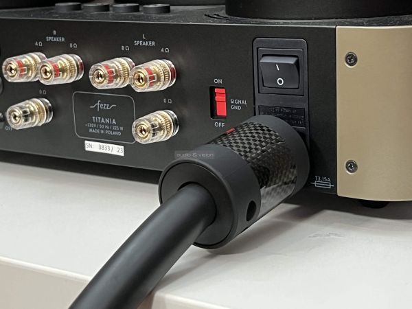 Az InAkustik cég, ha már lúd, legyen kövér alapon a tápkábelek terén is nagyot lépett előre, mégpedig a Referenz sorozatból való AC-4004 AIR változattal, amiből kétfajta kialakítás is járt nálunk. A kétfajta verzió a kábelek végén lévő dugók formájában érhető tetten, az egyik a "sima" IEC C15, ahol a két felső oldalél le van törve 45 fokban és egy IEC C19, ahol mindez (szemből nézve) téglalap alakú. A kinézet és a kialakítás illeszkedik a többi kábeléhez, ugyanaz a jó vastag, de könnyen hajlítható megoldás. Az AIR Helix egy innovatív belső felépítés, ami a gyártó névjegye, itt is megtalálható ugyanúgy, mint a hangfal és az összekötő kábelekben. Érdekességképpen megjegyezzük (a mai világban nem jellemzően) az összes kábel Németországban készül, nem adták ki bérgyártásra más országba.