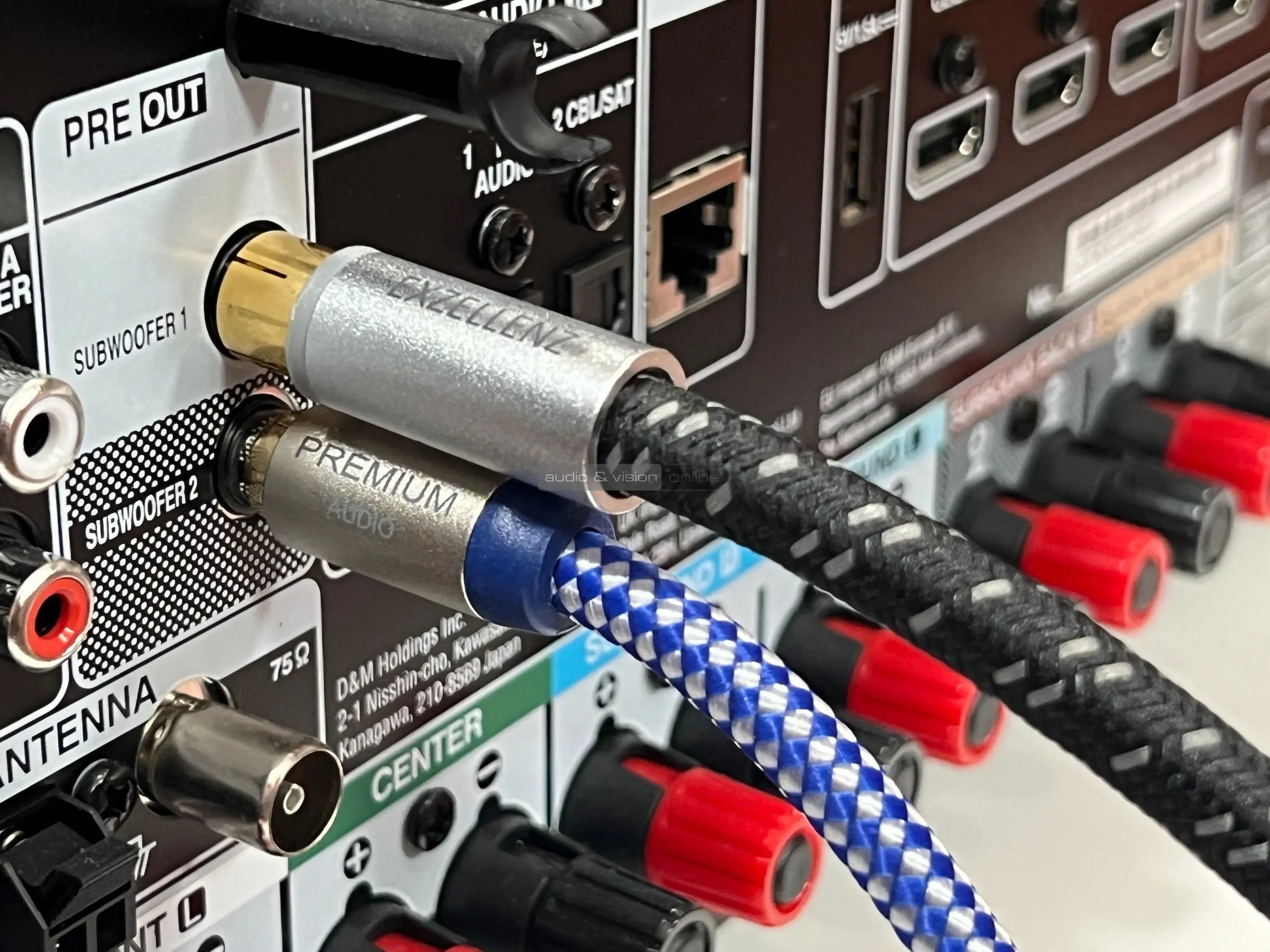 A Star és a Premium nagyon hasonló megoldást alkalmaz, mindkettőben 6 mm2-es nagytisztaságú rézkábel felel a precíz jeltovábbításért, a legdrágább verzióban pedig ezüstözött a külső rétege. A külső szigetelés az Exzellenz-ben már kettős megoldású, azaz megduplázták a kívülről jövő zavarok elleni védelmet, így valamivel vastagabb lett, mint a másik kettő. Természetesen az összes változat aranyozott RCA dugókkal büszkélkedhet és bónuszképpen Y kialakítással is kérhető, gondolván a régi, sztereó bemenetes szubládát használók táborára.