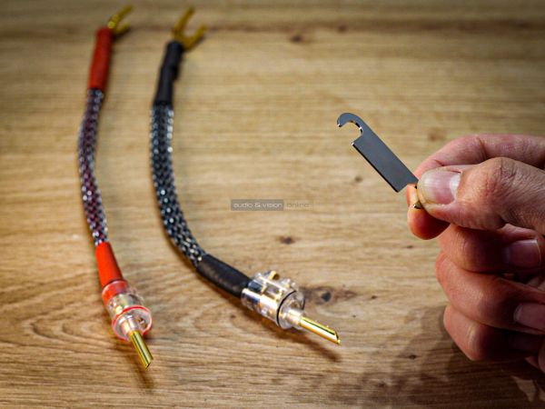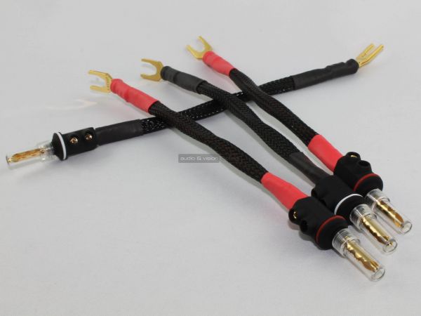 A KáCsa kínálatában három készre szerelt áthidaló szett szerepel. Ezek név szerint: KCE-SBR, KCE-SBRHE és KCO-SBRLUX. Áruk 18 000 Ft, 33 000 Ft, illetve 55 000 Ft körüli, az összeg mindegyik esetében négy darab áthidalóra értendő. Miben térnek el a gyártók által legtöbbször használt fémlapoktól? Főleg abban, hogy hagyományos hangfalkábelből származó vezetőszálakat tartalmaznak. A KCE-SBR és KCE-SBRHE OFC vezetős, a KCO-SBRLUX belseje hengerelt monokristályos (OCC) réz. A KCE-SBR forrasztott, két nagyobb rokona pedig forrasztás nélküli, csavarozással rögzített csatlakozókat tartalmaz.