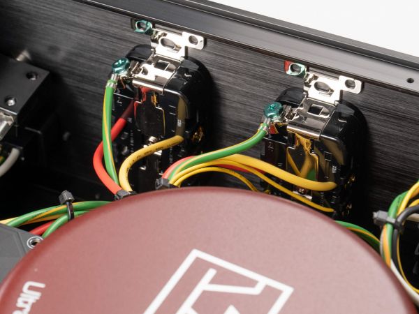 Hátul összesen hat darab kimeneti és egy darab bemeneti tápaljzat várja a kábeleket. A bemenetek két részre vannak osztva, kettő a digitális források számára van fenntartva maximum 300 VA/2,5 A feszültségre és áramra, a másik négy az analóg erősítésre szolgál, itt 1200 VA/5 A a kimenő teljesítmény.