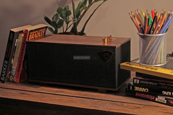 Ahogy a nagyobb testű Bluetooth hangrendszerektől megszoktuk, a The One is egyetlen dobozba épített sztereó konfigurációt tartalmaz. Kemény, erős szálú fonott takaróselyme mögött 2 db 5,7 cm-es szélessávú, előlapjának közepén pedig 11,5 cm-es mélyközép hangszóró kelti a hangokat. Kamrájának jobb- és balszélén egy-egy passzív radiátor is található, melyek segítőleg hatnak az alsó frekvenciákra. Egyébiránt a hangrendszer erősen klasszikus hangulatot kelt, nekünk elsőre a II. világháború utáni kisrádiókat juttatta eszünkbe.