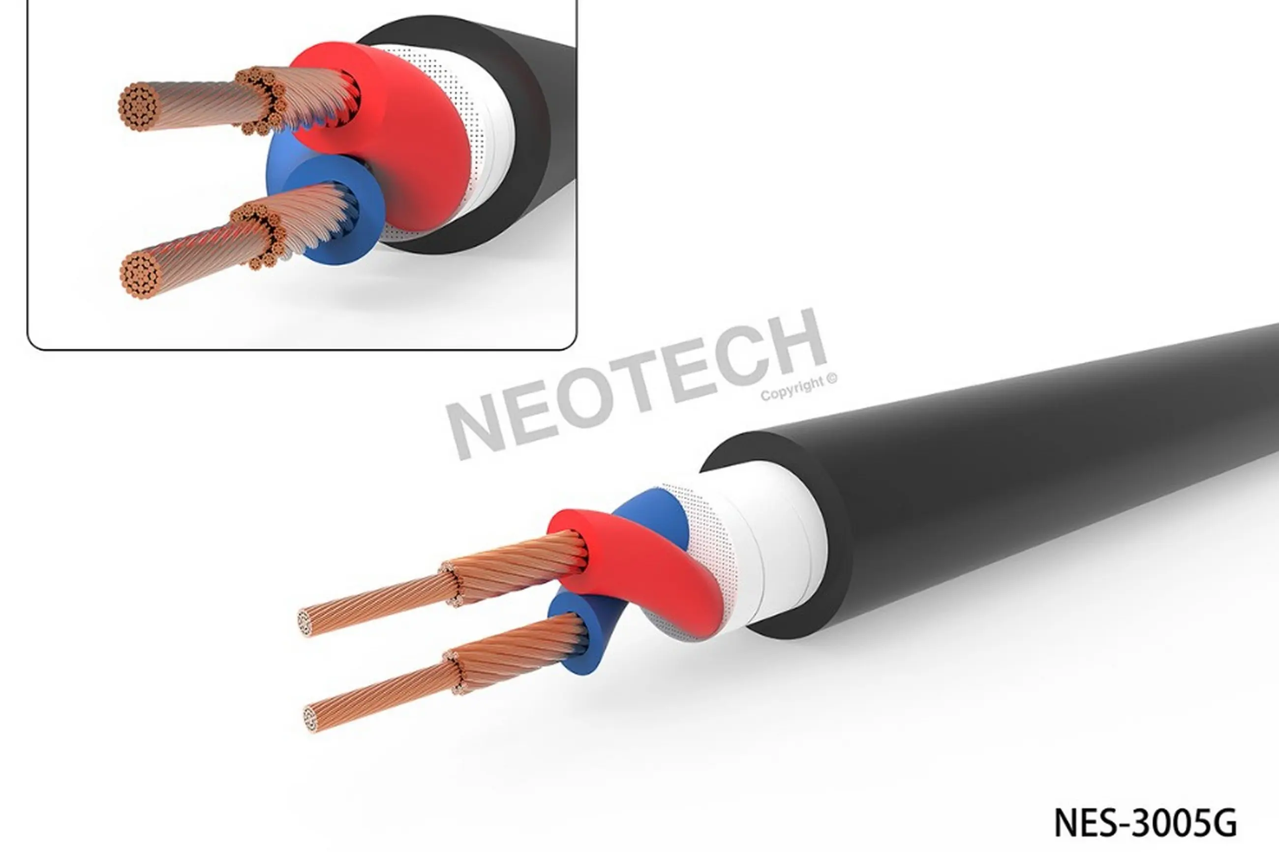 A Neotech hagyományos hangfalkábel szériái három kategóriára oszlanak. Alul helyezkednek el a legkedvezőbb ár/érték arányú, oxigénmentes réz (OFC) vezetős NES-5000 modellek. Az erős közép (globális mércével inkább felső közép) kategória az OCC, vagyis monokristályos rézmaggal rendelkező kábelekből áll - a NES-3005G és NES-3003G is ide tartozik. Az abszolút csúcs szintet pedig a monokristályos ezüstből gyártott NES-1000 széria képviseli. Léteznek olyan ágazatok is, mint a Grand család, de a cég kemény magját egyértelműen az említett három család képviseli.
