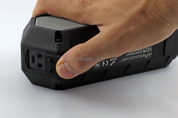 A hangszóró jobboldalán egy fülecske lapul, ezalatt egy micro USB valamint Jack be- és kimenetet helyeztek el. A micro USB természetesen az eszköz töltésére szolgál (ehhez kábelt is találhatunk a dobozban). A Jack bemenet akkor is hasznos lehet, ha olyan eszközről szeretnénk zenét hallgatni vagy videót nézni, amely a Bluetooth-t nem támogatja, hiszen ilyenkor elég csak előkapnunk a kábelt, és semmi nem állhatja útját kedvenc számainknak, videóink hangjának. A kábelek sérülésmentes hordozásához egy kis tároló tasakot is adtak.