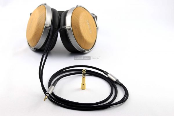 Sajnos hordtáska nincs, így marad a nem túl masszív doboz, ha magunkkal akarjuk vinni valahova. A hosszabbik, lecsatolható kábelen 6,3 mm-es, a rövidebbiken egy 3,5 mm-es, 6,3-as toldóval ellátott, aranyozott csatlakozó található, a vezetőszálak anyaga ezüstözött OFC réz, konkrétan ehhez a füleshez kifejlesztve.