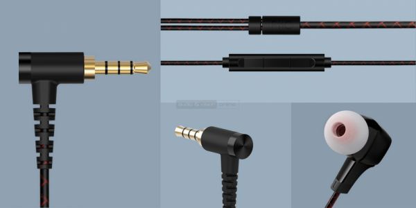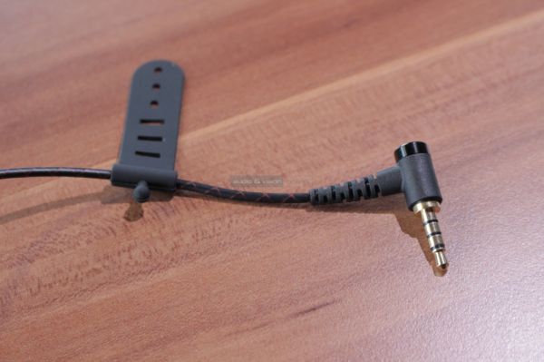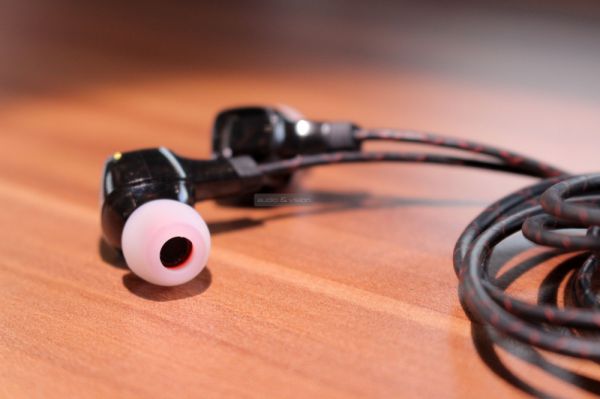 Az F1 az árához mérten szokatlan figyelmességgel megtervezett termék. Hangsúlyos alkotóeleme a kábel, amiben részben dizájnt, részben praktikumot szolgáló csíkok húzódnak végig. A piros sávok poliuretán erősítések, amiknek köszönhetően nehezebben gabalyodik és tartósabb is a vezeték. Ahogy végighúztuk kezünkön, feltekertük majd kiengedtük, kapásból meg tudtuk állapítani, hogy az általunk ismert, okostelefonokhoz mellékelt, fehér köpenyes kábelekhez képest ez a verzió rugalmasabb szerkezetű és könnyebben használható.
