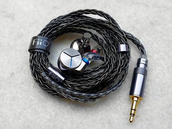A nyolc teljesen különálló érből készült, TPU (termoplasztikus poliuretán, a sokkal környezetszennyezőbb PVC helyett) köpenyes kábel egyértelműen vaskosabb és kicsit nehezebb volt, mint amivel a legtöbb IEM (in-ear monitor) esetében eddig találkoztunk. Cserébe jobb tartósságot sugallt. A kábelre kötegelőt is helyeztek, ami további praktikus és jóleső részlet. A moduláris, négytűs aljzatba beilleszthető csatlakozóvég a Fabrilous szabadalma, de érthető, hogy miért fizet nekik licencdíjat a FiiO. Ez a legokosabb cserélhető dugó, amivel eddig találkoztunk.