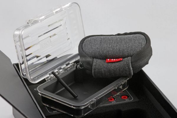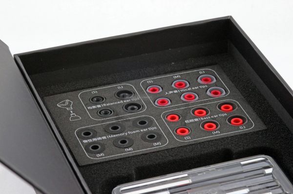 A kemény falú, fekete, mágneszáras doboz fedelét felnyitva, ízléses módon, szivacságyba szív alakban fektetve látható a fülhallgató. A szivacslemezt felemelve tódulnak elénk a mellékelt extrák, ezekről egyes gyártók nyugodtan példát vehetnének.