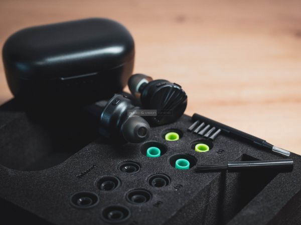 A fülhallgatók formatervére és anyagminőségére több figyelmet fordítottak, mint a töltőtokra, ami pozitív, mert legalább a fülbe illeszkedő, ténylegesen kihasznált részek nem érződtek olcsónak. Megőrizték a FiiO vezetékes fülhallgatóinál látott, hárfaszerű motívumot, amely a hangszórókamra külső oldalán látható. A rések alatt légirányító rács és vízhatlan pamutréteg található. Tesztalanyunk megkapta az IPX4 minősítést, ami azt jelenti, hogy egy röpke zápor, vagy némi izzadtság nem okozhat neki problémát.