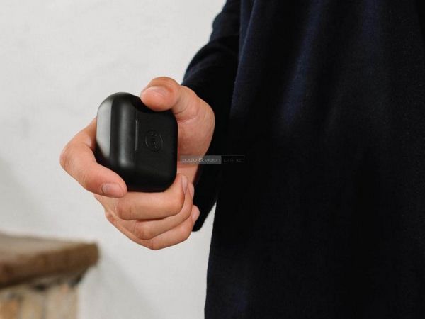 Persze a hátoldalon lévő USB-C aljzat, a 4 db töltésjelző fehér LED és a diszkréten elegáns, matt felületbe vájt, fényes embléma már sejtetik, hogy a könnyen zsebre vágható szelence egyáltalán nem fürdőszobai kiegészítőt tartalmaz.