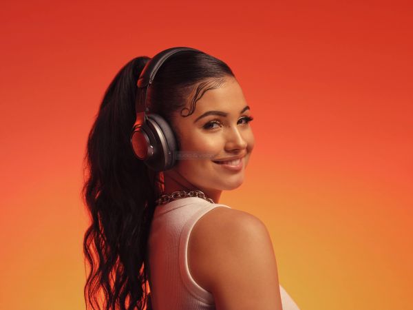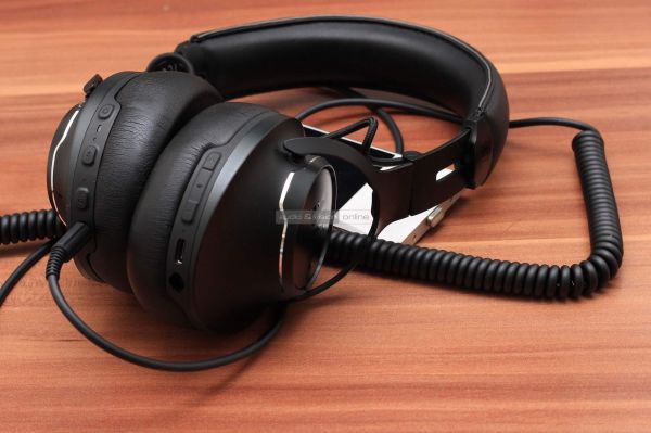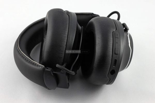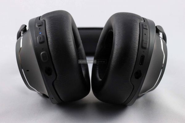 A fülpárnák egyetlen mozdulattal cserélhetők. A jobb és bal oldalakat összekötő kábel vastag, textilköpenyes, így vélhetőleg bírni fogja az idő próbáját. A fejhallgató összecsukható, biztonságosan tárolható. Az oldalsó emblémák végre nem túlzottan hivalkodók, csupán egy fényes rétegként jelennek meg a matt fekete kör közepén. A kezelőszerveket vastag gumi fedi. A töltés USB-C kábellel lehetséges. Minden adott a modern összképhez.