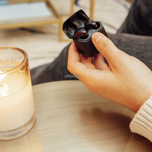 A vezeték nélkül és USB-C aljzaton keresztül is tölthető tok nem számottevően nagyobb bármely más TWS fülhallgató dokkolójánál, ugyanakkor jó tapintású, matt fekete külseje kellemes benyomást kelt. Fedele egyetlen ujjal felnyitható, de erős mágneseinek köszönhetően igen határozottan csukódik vissza. A csomagolt tartozékok részét képezik jó minőségű szilikonos fülillesztékek, felhasználói dokumentáció és töltőkábel is.