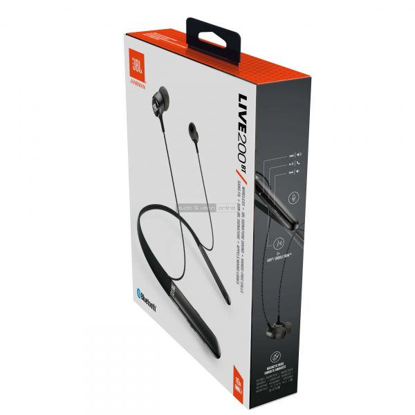 A JBL LIVE 200BT megtévesztésig hasonlít nagyobb testvérére, szinte csak a kezelőszervek számában tér el. Kialakítása szintén nyakpántos, hallójáratba illeszkedő kivitelű. A nyakpánt anyaga szilikongumival borított műanyag. A fülhallgatók textil bevonatú vékony kábeleken csatlakoznak a pánthoz, és mivel a kezelőszervek a nyakpántba vannak integrálva, így a vékony vezeték szinte súlytalan hatást kelt. A kapszulák alumíniumból készültek, belsejükben oldalanként egy 8 mm-es, dinamikus hangszóróval.