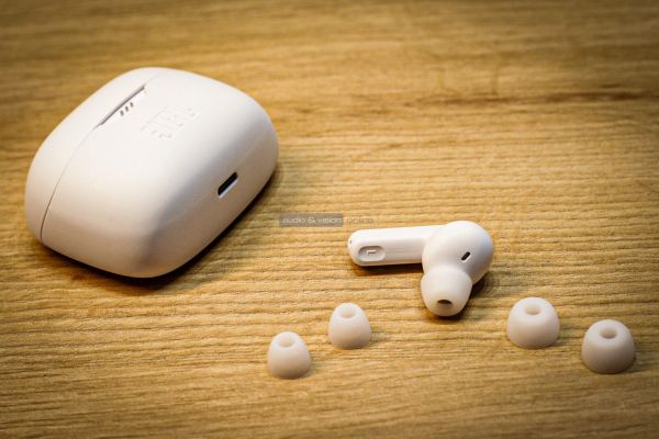 A Tune Beam formaterve inkább az Apple AirPods Pro-ra hasonlít, vagyis házának végén mélyebb profilú gumigyűrű van, ami még a Tune Buds-hoz képest is egyértelműbb módon, hatékonyabb záródással illeszkedik be a hallójáratba. Igaz, hogy a három fülhallgató műszakilag sem teljesen azonos (eltérésként leginkább a hangszóróméret és akkumulátor kapacitás érdemel említést), de miután mindhármat kipróbáltuk, a fő eltérés a viselés érzetében, a komfortban keresendő.