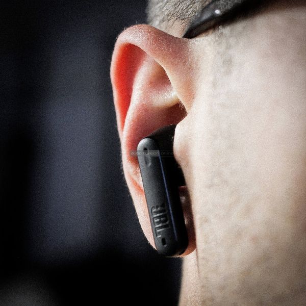 A Tune Flex épphogy csak érintkezett a füllel. Semmi súlya, feszítése nem volt. Még akkor sem nyomta a hallójáratot, ha a speciális gumicsőrt helyeztük rá. Előnyként könyveltük el a pihentető komfortot, ami egésznapos irodai, otthoni (vagy home office) környezetben nagy előnyt tud jelenteni. Más kérdés, hogy szinte bármilyen hirtelen fejmozdulat, ugrás, szökkenés, hátra dőlés következtében azonnal kimozdult, vagy kipottyant a helyéről. Az óvatos illeszkedésből eredően ugyancsak jelentősen befolyásolta az eredményt, hogy kellően közel helyezkedett-e el a halójárathoz. Konkrétan, ha nem nyomtuk a fülünkbe, akkor a basszus csaknem megszűnt. Utóbbit jó tudni különösen azoknak, akik eleve a populáris, izmos JBL hangzásra tartanak igényt. Megkapják a Tune Flex-től is a cégre jellemző karaktert, de csak akkor, ha gondosan kicentizik annak pozícióját. Elég 1-2 milliméter elmozdulás, és a legendás hangzás tovaszáll, helyette szerény, távoli rádiószerű dallamok maradnak.