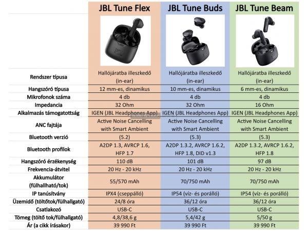JBL Tune Flex, Beam és Buds TWS Bluetooth fülhallgatók áttekintése