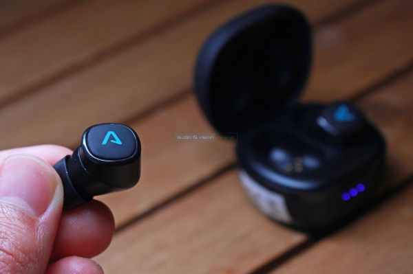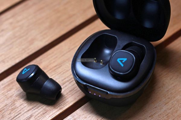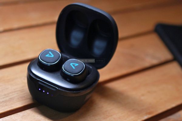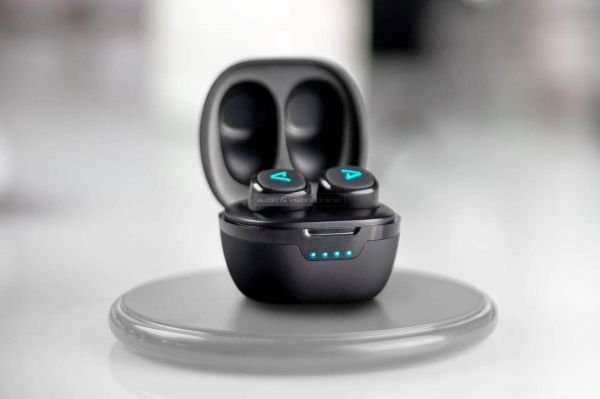 A fő akkumulátor töltöttségi szintjét négy jól látható, apró kék LED mutatta. A dokkoló fedelét egyetlen ujjal is könnyedén felnyithattuk. A fülhallgatókat ugyancsak egyszerű volt kivenni és visszatenni is, köszönhetően a rejtett mágneseknek. A minőségérzet összességében egy belépőkategóriás TWS-hez méltó volt. Pozitív, hogy USB-C aljzattal oldották meg a töltést és a Qi vezeték nélküli gyorstöltő kompatibilitás is jó hír lehet sok minimalizmus-hívő modern felhasználónak.
