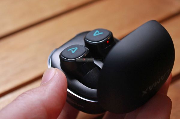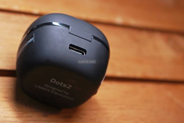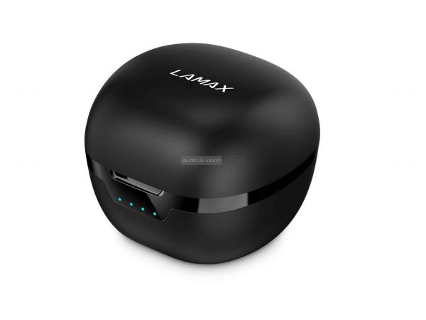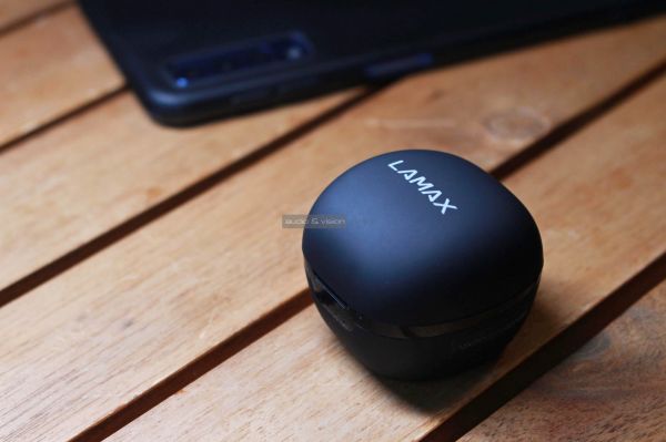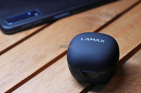 A kis LAMAX kellemes tapintásúra gumírozott, mattfekete műanyagból készült dokkolója elsőre meghökkentően kicsinek tűnt, főleg úgy, hogy a benne lévő akkumulátor még 4-5 alkalommal képes volt újra tölteni a fülhallgatókat. Az alig macaron méretű tároló alkalmatosság méretezésével optikailag játszottak egy kicsit: kis szélességét magasságával kompenzálja. E kialakítás egyetlen hátránya, hogy szűkebb nadrág/kabátzsebből igencsak kidudorodik.