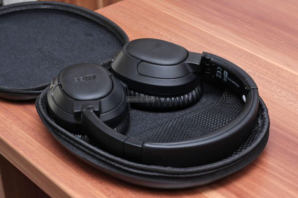 A fejhallgató összecsukható, de tárolását nem teljesen összehajtogatva, hanem elfordított kamrákkal érdemes megoldani. Ugyanis egy igényes védőtokot is mellékeltek hozzá, amelybe így, fektetve lehet betenni.