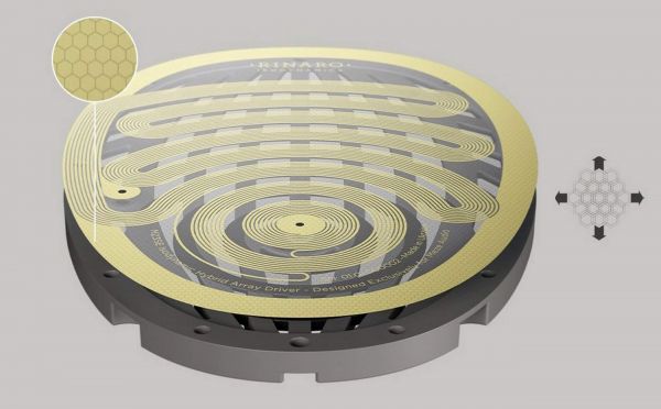 Az Ukrajnában alapított Rinaro Isodinamics elektroakusztikai céggel való együttműködés gyümölcse egy olyan hangszóró, amely jelenleg csak a Meze zászlóshajó fejhallgatóiban található meg. Különlegessége, hogy nem egy, hanem két útvonalat formálnak a membránban lévő vezetőszálai. Egy kör alakú ösvény felel a magashangokért és egy fölötte lévő, kanyargós második szekció pedig a basszusért. A fejhallgatóban lévő mágnesek a vezetők elrendezéséhez illeszkednek: változó ívű, félhold alakú mágnesek fedik a mélyközép frekvenciákért, a kör alakú mágneskarikák a magashangok megszólaltatására való részt. A speciális hangszóró működési elvéről és felépítéséről részletesebben írtunk korábbi, Meze Empyrean fejhallgatóról készült tesztben is.