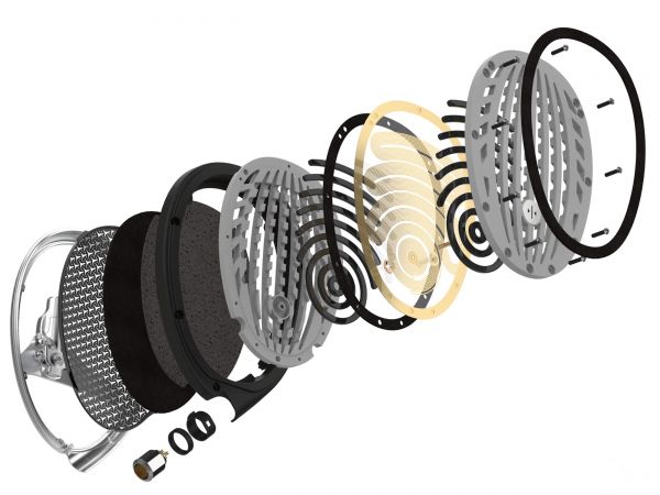A kamrák nem a szokásos, kerregő-csattogó hangú lemezzel, hanem egy fémrúd segítségével, teljesen hangtalanul igazíthatók a fejhez. A hangszórók külső oldalát fekete alumínium rács fedi, amely jó kontrasztot képez a színezetlen, CNC marással formált alumínium keretekkel. Felhasználói kézikönyvében a gyártó külön kéri, hogy ne nyomkodják a rácsot, mert az tartóst sérülést okozhat a fejhallgatóban.
