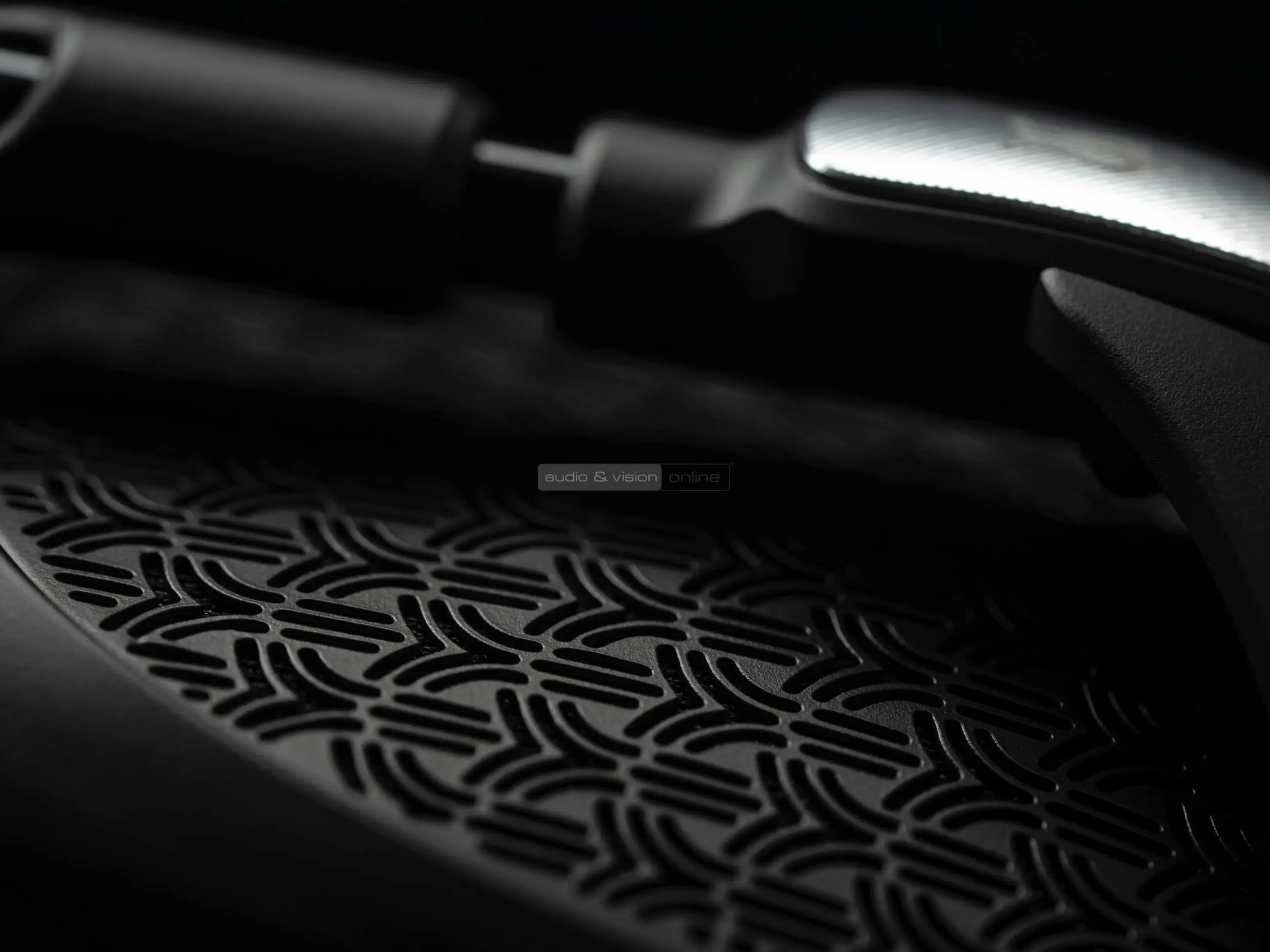 A termék példamutató gyártási minősége fotókon is látszik, élőben pedig hatványozottan átjön. Prémium anyagok, mint a szénszál, alumínium és bőr kombinációját használja, mind precízen összeszerelve. A hangszórókamra külső oldala CNC marással készült, elegáns matt fekete felülettel és natúr fém díszítésekkel, ami modern és időtlen megjelenést kölcsönöz neki. Láthatóan törekedtek arra, hogy érzékeltessék a felhasználókkal, hogy a termék ára látványban is megmutatkozik.