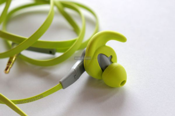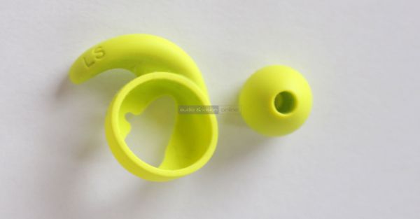 Ha közelebbről szemügyre vesszük az Achieve fülhallgatót, megfigyelhető, hogy mikrofonos headset modulja nem tartalmaz nyomógombot. Ezért ha zeneszámot akarunk váltani vagy hívást kezelünk, ahhoz csak a mobileszköz kijelzője használható. Továbbá az Achieve csak a gyárilag ráhelyezett fülhoroggal érkezik és fülbe illeszkedő gumi betétje sem annyira gömbölyű, mint a Compete esetében, inkább lövedék formájú.