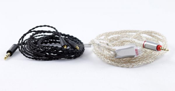 Moduláris a Basic kézzel fonott, fekete gumírozott köpenyes vezetéke, egyik végén 3,5 mm-es Jack dugót, a másikon pedig MMCX csatlakozókat találunk. Mi 133 centis hosszúságot mértünk, ami utcai használathoz felesleges, otthon ülve viszont praktikus lehet, ha még a monitor közelében lévő DAC-hoz el akarjuk vinni a kábelt.