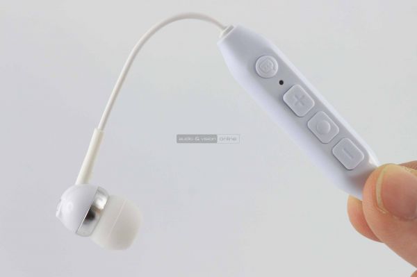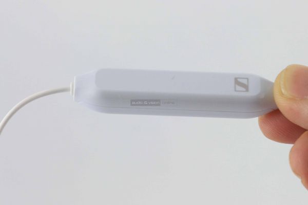 Tarkónál található az akkumulátor pakk és jobb oldalon a távvezérlő. A 9,7 mm-es, dinamikus hangszóró ugyanaz, mint a CX 150BT-ben, így a már-már kezelhetetlenül kicsi kapszula - amit, ha bedugunk csak a zsinórral tudunk kihúzni - itt is ugyanazt a problémát veti fel. Az egyik lényeges eltérés a két modell között az aptX és aptX LL (alacsony késleltetésű) Bluetooth kodekekben található. A másik a távvezérlőn található hangasszisztens aktiválására szolgáló gomb, aminek egyszeri megnyomásával elérhetjük telefonunk hangasszisztensét, legyen az Siri, Google Assistant, Baidu stb. A gyártó oldala szerint a CX 350BT is képes kommunikálni a Sennheiser Smart Control alkalmazással, itt tudjuk beállítani az EQ-t, valamint aktiválni a Podcast üzemmódot is.