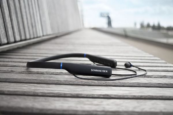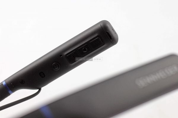 Több nyakpántos konstrukcióhoz volt már szerencsénk, ezek közül akadt olyan, amely nehéz volt és hosszútávon diszkomfortérzetet keltett, vagy olyan, amelyik nem volt elég stabil. Szerencsére a Sennheiser fülese mindkét szempontból pozitívnak bizonyult. A súlya egészen elhanyagolható, mind össze 48 g, ezért akkor sem vált kényelmetlenné a viselése, amikor egész nap a nyakunkban hagytuk. A nyakpánt nagyrésze kemény műanyagból áll, kivéve a nyakunkkal érintkező felét, ott ugyanis puha tapintású szilikonborítást helyeztek el, ezzel is hozzájárulva a kényelemhez. A nyakpántot eléggé rugalmasan, könnyen szét lehet húzni, így a felhelyezése nem okozhat problémát még a vastagabb nyakkal rendelkezők számára sem, ezzel együtt pedig elég masszív is. A kizárólag fekete színben megvásárolható termék megjelenése, felépítése minimalista és funkcionális.