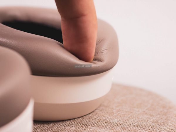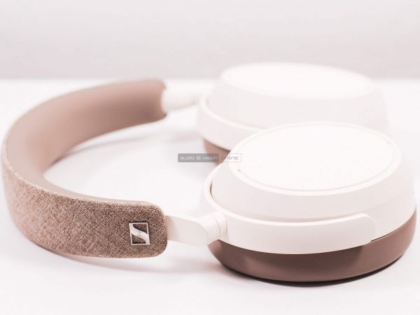 Fekete vagy fehér színek közül lehet választani, nálunk utóbbi vendégeskedett, ami inkább mandulatejszínűnek nevezhető. A hangszórókamrák ovális formájúak. A fülpárnák kellően szélesek, hogy nagyobb fülre se nyomódjanak rá. Bélésük rendkívül lágy memóriahab. A fejpánt fejjel érintkező oldala gumi, részben szivacs, részben levegő belsővel. Külső oldala ahhoz hasonló szövet, amely a MOMENTUM True Wireless 3 fülhallgató töltőtokján is található. Az emblémát nem harsányan az oldallemezekre, hanem diszkérten a szárbetétek fölé pozícionálták.