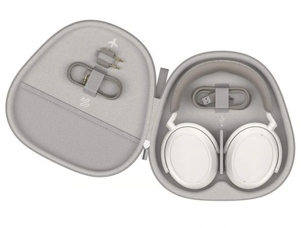 Igényes doboz tartalmazza a fejhallgatót, amelyben üzembehelyezési segédlet és egy kiváló hordtáska is található. Utóbbi a Sennheiser figyelmességét szónokolja. Kemény falú, cipzárral nyitható, de mivel 90 fokkal elfordított kagylókkal helyezhető bele a füles, viszonylag lapos is. A tartozékoknak (repülős adapter, Jack-Jack kábel, USB-A-C töltő/adatkábel) gumipántokat varrtak a belső falakra. A két kagyló közé elválasztót helyeztek, hogy az egymásnak nyomódó oldalak ne sérüljenek.