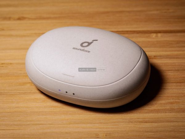 A könnyen zsebrevágható, kellemes tapintású töltőtok fedele eltolható, kicsit olyan érzetet kelt, mint a régi szétcsúsztatható mobiltelefonok (amiket mi nagyon szerettünk). Az akkumulátor töltöttségét három fehér LED mutatja. A töltés USB-C kábellel lehetséges, melynek aljzatát körömmel felnyitható gumifedél takarja. A minőségérzet összességében kellemes, különösen a töltőtok esetében.