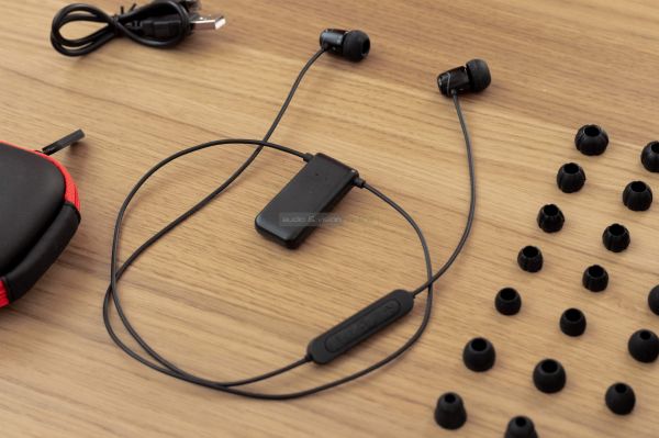 Amint azt már írtuk, a SoundMAGIC E10BT az eredetileg felszerelt mellett, további 10 pár gumiharangocskával érkezik, ami sokat ad a kényelemhez. Emellett mi pozitívumként értékeljük azt is, hogy az elektronikát a ruhánkra csíptethetjük. Bár ezt talán egy picit ügyesebben is megoldhatta volna a gyártó, mert magát a fém rögíztő nyelvecskét könnyű lepattintani. Igaz, visszatenni sem nehéz.