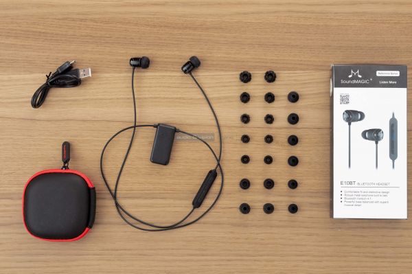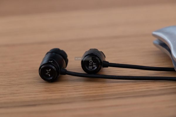 Az E10BT kialakítása a ma divatostól eltérő, hiszen a szokványos fülhallgatók és a kis gombcsoport között, a kábel közepén, egy plusz kis dobozkában lakik az elektronika és akkumulátor. Ennek előnye, hogy maguk a fülhallgatók könnyűek maradtak, az amúgy nem túl nagy súly (20 g) javát pedig egy csipesszel a ruhánkra rögzíthetjük. Így a vezeték nélküli modellek táborában is kifejezetten kényelmes az E10BT. A gombcsoport, természetesen a lejátszás és hangerő vezérlése mellett a telefonálást is szolgálja. Illetve, praktikusan ennek hátoldalán lakik a mikrofon is.