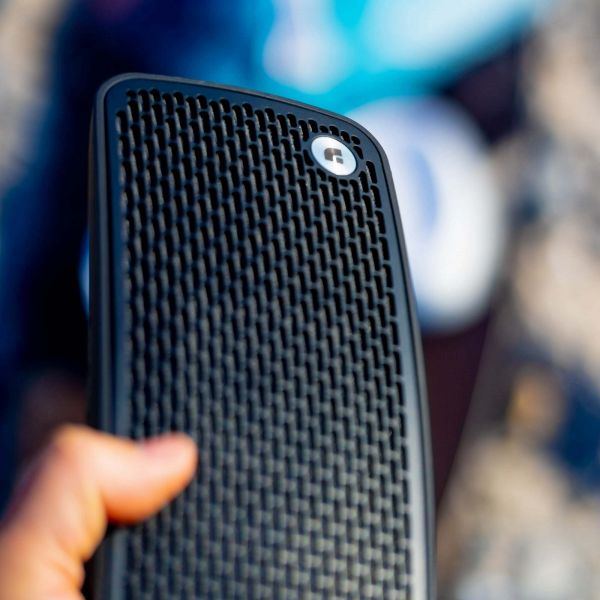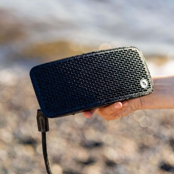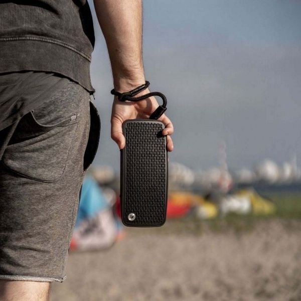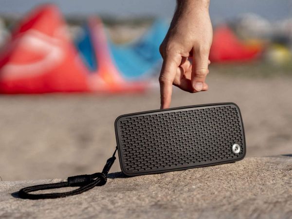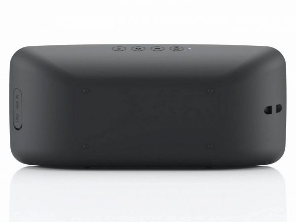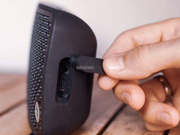 Fent négy besüllyesztett gomb sorakozik: főkapcsoló, jelszint vezérlők, Bluetooth párosítás és egy LED. Ennyi, semmi másra nincsen szükség e termékkategóriában. Jobb szélen, gumifedél mögött található a töltésre szolgáló USB-C aljzat és egy 3,5 mm-es Jack bemenet. Utóbbival egyre ritkábban találkozni vezeték nélküli hangrendszeren, pedig rengeteg olyan forráskészüléket kiszolgálhat, amely nem tartalmaz Bluetooth-t. Két P5 készülék összepárosítható vezeték nélküli sztereó (TWS) üzemmódba.