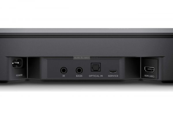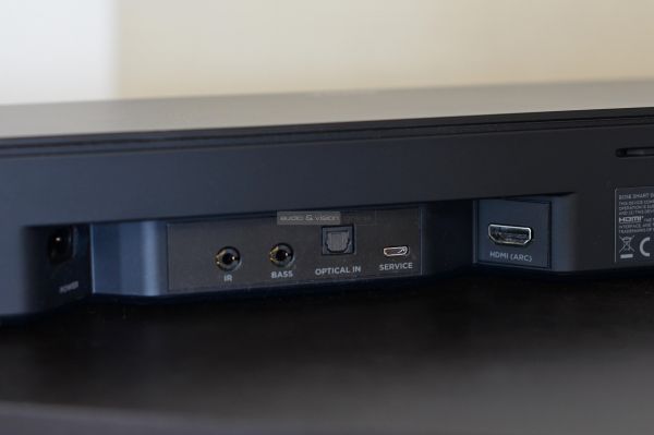 A hangrúd hátoldala is csak a legszükségesebb bemeneteket rejti, illetve néhány "Bose"-os kiegészítésbe itt is belefutottunk. Ez alatt az IR aljzatot és a mélysugárzó modul 3,5 mm-es AUX Jack kimenetét értjük, ami egy sajnos nem mellékelt Bose AUX kábelen képes kapcsolatot létesíteni a Bass Module vagy az Acoustimass hangszórókkal, illetve az előbbiekkel ugyanezt vezeték nélkül is meg tudja tenni. A digitális bemenetek egy optikai és egy HDMI ARC-re korlátozódtak, így sajnos nem túl tág a külső egységek felhasználásának lehetősége, amennyiben a tévé készülék sincs elhalmozva csatlakozókkal. Ennél a résznél egy tisztességes nyakon csapást küldenénk a Bose felelőseinek, amiért 170 000 Ft-ért cserébe már luxusnak érezték, hogy csomagoljanak is egy HDMI kábelt is az optikai mellé.