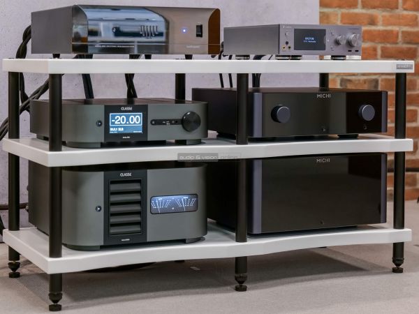 Az Aymara Kft. Bemutatótermében tisztességes komponenskörnyezetben fogadtak minket a hangsugárzók. Közöttük, Creaktiv állványon a Classé Delta Pre sztereó előfok és és Delta Stereo végerősítő gondoskodott a meghajtásról.