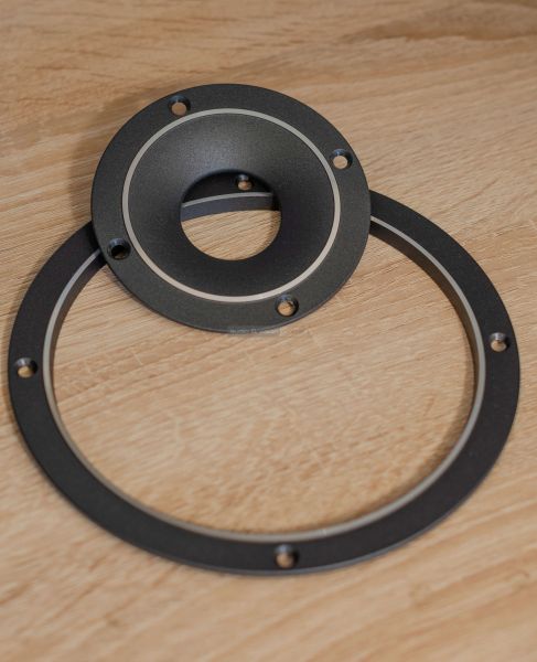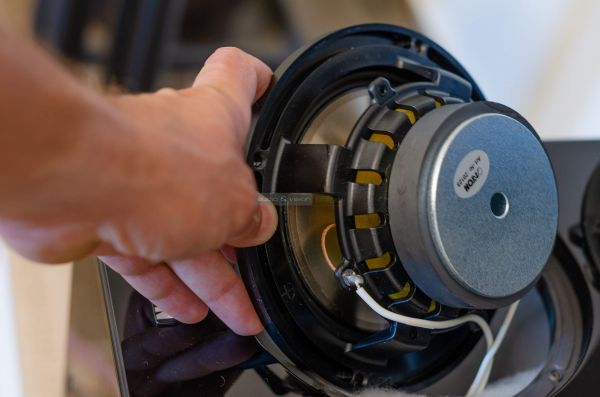 A Canton rangsorában az utolsó típus, ami még szögletes formákkal rendelkezik, a külső "élek" igényesen lekerekítettek, a lakkozás kifogástalan. A hangszórókészlet egy 18 cm-es hullám gumiperemes titán kónuszú mélyközép, valamint egy 25 mm-es alu-mangán magassugárzóból áll, melyek peremeit, egy kifejezetten mutatós alumínium öntvény gyűrű takarja. Ez a gyűrű is szerencsére az újabb Chrono modelleknél használt antracit porszórást kapta a fényes alumínium helyett, melynek köszönhetően végre nem lehet összekeverni a Cantont messzebbről egy HECO vagy Magnat hangdobozzal. Aki esetleg mégis "függöny" mögött szeretné tudni ezeket a szép hangsugárzókat, az egy egyszerű mozdulattal felhelyezheti a mágnessel rögzülő hangszóróselymet.