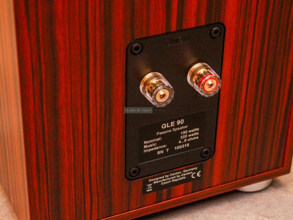 A Canton GLE 90 tömege közel 20 kg, a stabilitásáért négy darab fixen rögzített talp felel, a reflexnyílás hátul és lent található. Ez természetesen valamivel szélesebb, mint a GLE 30 esetében, a mélységük viszont hasonlóan terjedelmes.