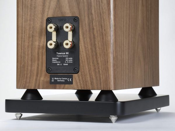 A Canton Townus 90 elég termetes hangfal, összesen négy darab hangszórót tartalmaz, a felépítése háromutas, rendszere basszreflex. Az utóbbi széles kimenete a doboz alján található, a vaskos MDF doboz és a talp között négy darab lefelé vastagodó fémláb biztosítja a távolságot.