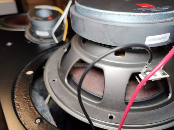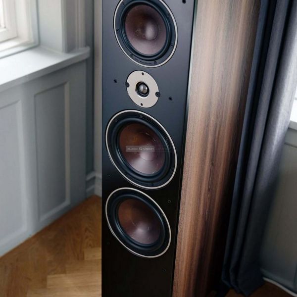 A 178 mm-es középsugárzó legfelülre került, a kettő darab 223 mm-es mélysugárzó pedig a lágy dóm alá. Igen, jól olvasták, a DALI az alkalmazott hangszórók méreteit tekintve sem bízott semmit a véletlenre. A membránok egyedi színe mindenkinek, nem csak DALI rajongóknak lehet ismerős, hiszen továbbra is farost-szálas, finomszemcsés papírpép az alapanyaga, ami kombináció eddig mindig jól bevált.