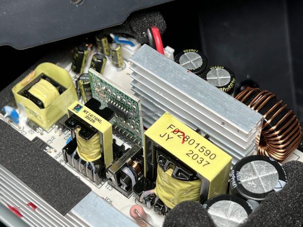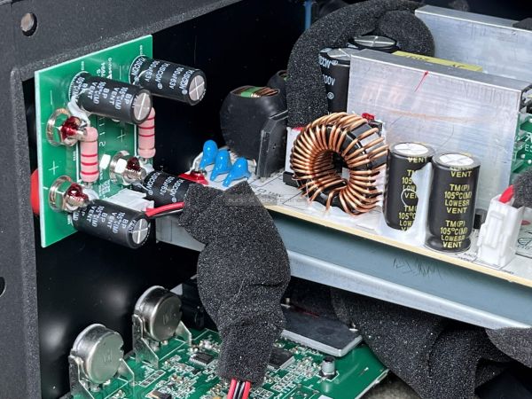 Az erősítő igényesen megtervezett és elkészített szerkezet, nem spóroltak a tekercsekkel és a kondenzátorokkal. A műanyag burkolat teljesen zárt, remélhetőleg alapos tesztelés után döntöttek úgy, hogy nem kellenek rá szellőzőnyílások.