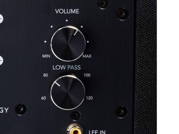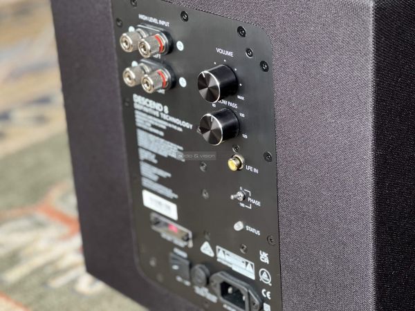 A hátsó, elektronikát tartalmazó panel is kulturált. Nem túl bőséges, de a fontosabb kezelőszervek (hangerő, vágási frekvencia, fáziskapcsoló, fő kapcsoló) megtalálhatók rajta. Egy monó RCA és egy sztereó hangfalkábel bemenet közül lehet választani. Utóbbi akkor hasznos, ha a tulajdonos PRE OUT nélküli A+B hangfalkábel csatlakozókkal ellátott erősítővel rendelkezik. Míg az A kimenet a hangfalakat hajtja, addig a B csatlakoztatható a mélysugárzóhoz, ami leszűri a mélyhang információt.