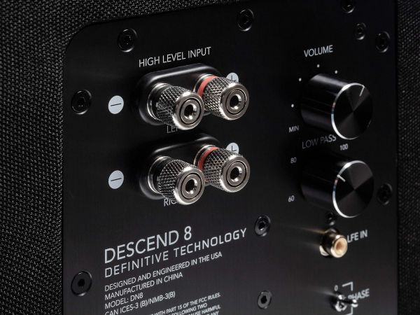 Többek között a korábban bemutatott és pozitívan értékelt Demand D11 állványos hangfal és a Descend DN12 szubláda is bizonyította, hogy a Definitive Technology ügyesen bánik a passzív membránokkal. A megoldás előnye, hogy viszonylag kis dobozméret mellett is képes a nagyobb testű hangsugárzók basszus karakterét és hangnyomását hozni. Ezt az akusztikai trükköt alkalmazza a Descend DN8 mélyláda is. 3XR elnevezésű hangszóró kiosztással rendelkezik, amely egy előre néző aktív és két oldalra néző passzív membránt jelent. Így nagyobb a levegőt mozgató felület. Zárt kivitelű, nincsen reflexnyílása, ezért csőzajtól nem kell tartani.