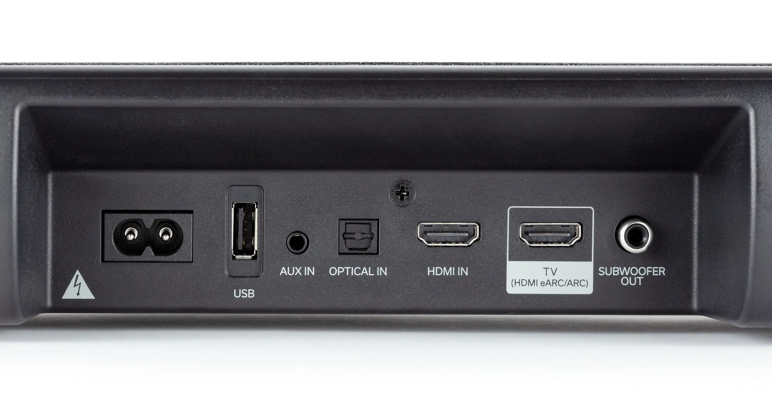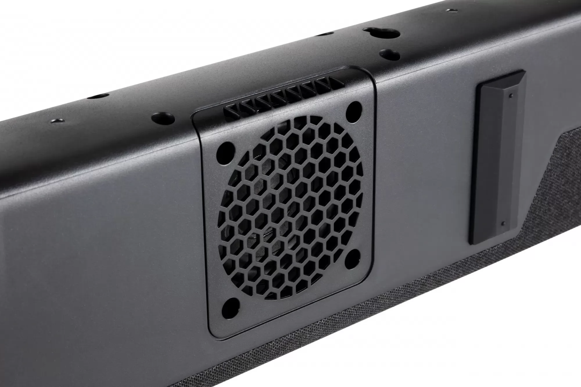 A rendszere 2.1 kivitelű, amit összesen hat darab hangszóróval ér el, a basszreflex portból pedig a hangrúd mindkét végén találunk egyet. A dupla 75 mm-es mélysugárzó a soundbar aljába került, a kettő 25 mm-es magassugárzó és a szintén kettő 90x40 mm-es középsugárzó pedig előre.