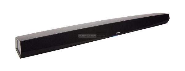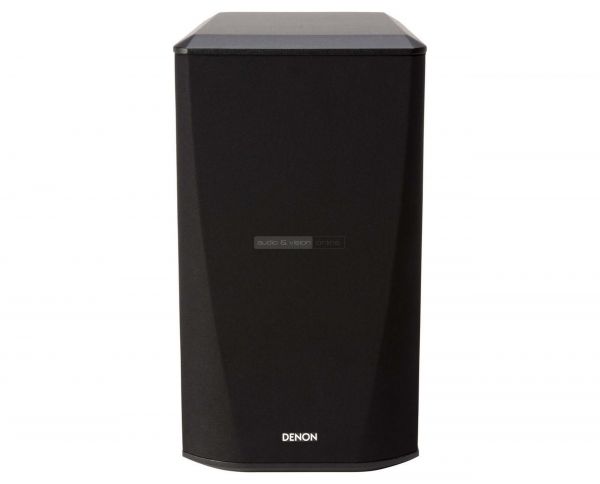 A mélysugárzó és hangrúd is a jellegzetes "HEOS-os" dizájnnal büszkélkedhet, konkrétan megszólalásig hasonlít a Denon HEOS HomeCinema HS2 soundbar-ra, és apró érdekesség, hogy a hangrúd előlapját el lehet távolítani. Ez annyiból nem érhető, hogy megtéve cseppet sem volt esztétikus a látvány, másrészt (amíg meg nem hallgattuk) kisebb csalódás volt a hangszóró készlet. Szinte már megszokott, hogy egy komolyabb hangrúdba annyi hangszórót préselnek, amennyi csak belefér, nos, a Denon ezt másképp oldotta meg. Az összesen 4 db hangszórót (2 db selyem dóm magassugárzó és 2 db ovális mélyközépsugárzó) egyenként hajtja meg egy-egy nagyteljesítményű D osztályú erősítő, de ezeknek a teljesítmény adatait a gyártó valamiért eltitkolta. Ezzel szemben annyit megsúgott a Denon, hogy ugyanazt a 400 Hz/32 bites DSP processzort kapták meg a DHT soundbar-ok, amik a komolyabb házimozi erősítőkben is megtalálhatók.