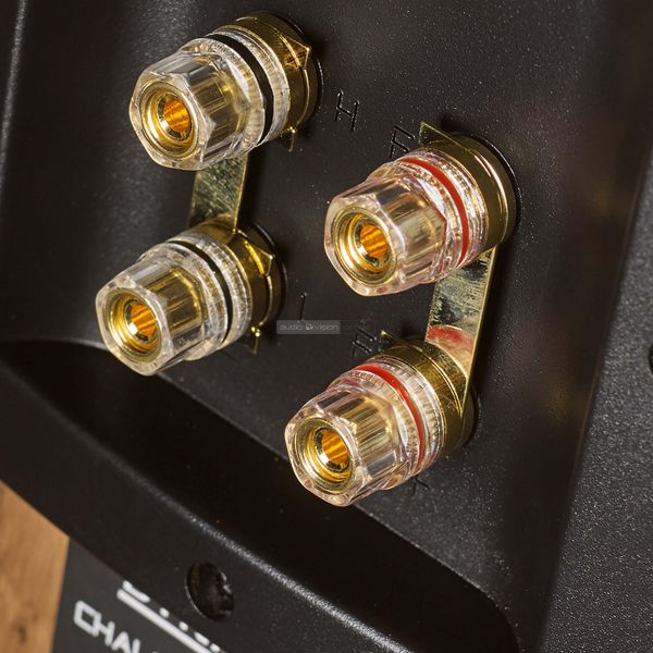 A basszusról a reflexportok mellett kettő db 250 mm-es mélysugárzó gondoskodik. Az membránok alapanyaga kevlár, aminek pozitívumait talán szintén felesleges újra leírnunk. A Challenger M-105 nagyon masszív darab, de az említett hangszórók egy szimpla dobozban sok mindent nem tudnának kezdeni magukkal, ezért a doboztest falainak anyaga MDF, belül pedig van bőven merevítés és csillapítóanyag. A választható szín lehet fehér, fekete vagy tölgy, ráadásul a felület matt, csak az előlapra került némi csillogó anyag. Pontosabban arra a néhány négyzetcentiméterre, amit szabadon hagytak a hangszórók.