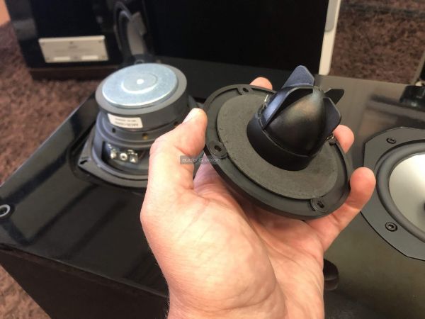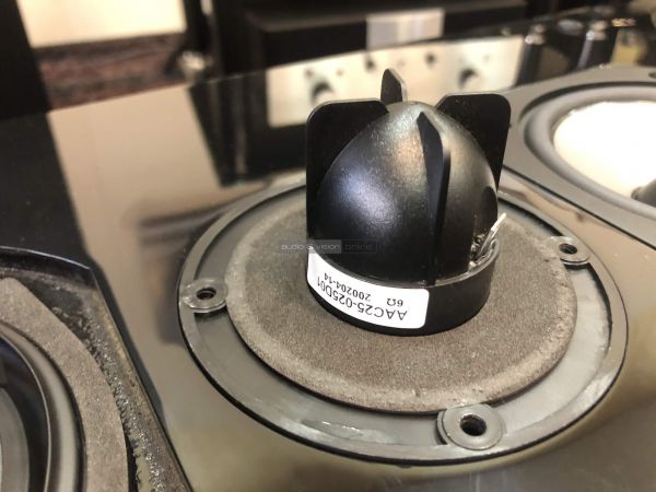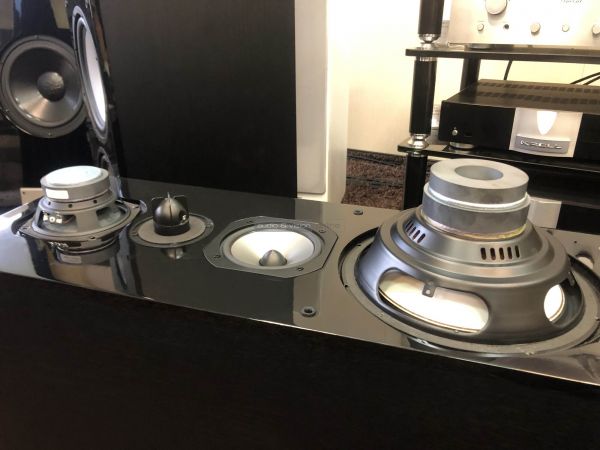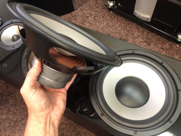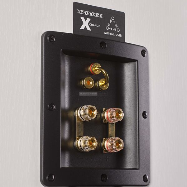 A felső szekcióban D’Appolito elrendezésben helyezkedik el a kettő db 130 mm-es középsugárzó és a 25 mm-es magassugárzó. A középsugárzók membránjainak alapanyagában szénszálak is megtalálhatók, aminek újabb méltatásába nem fogunk bele, közepükön porsapka helyett fáziskúp díszeleg. A magassugárzó úgynevezett Super Audio, amiről azon kívül, hogy 32 kHz-ig dolgozik, sok mindent nem árul el a gyártó. A Definition DF-8 típusnál is alkalmazott X-change opciót azonban nem nehéz kiszúrni a hátoldalon, ahol a középtartomány finomhangolását végezhetjük el -2 dB/0 dB/+2 dB/+4 dB értékek között egy jumper dugdosásával.