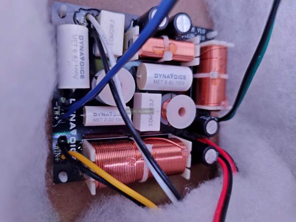 Föléjük helyezték el a 127 mm-es középsugárzót, a sort pedig a 25 mm-es textil dóm magassugárzó fejezi be, amit egy külön fémtáblába integráltak, annak stabilitásáért összesen nyolc csavar felel.
